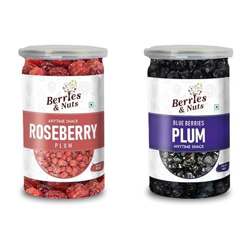 Berries And Nuts Premium Dried Roseberry Plum & Dried Blueberries Plum Combo | Roseberry 200 Grams and Blueberry 250 Grams | 450 Grams