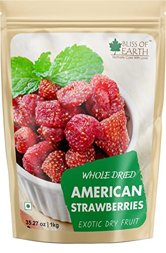 Bliss of Earth 1kg Whole Dried American Strawberries Exotic Dry Fruit Healthy and Tasty