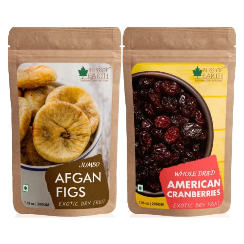 Bliss of Earth Dried Figs are in jumbo size and handpicked from afghanistan .These figs are low on calories and are immensely rich in soluble dietary fibre essential nutrients and a host of plant compounds that contribute to healing health benefits. figs are a powerhouse of antioxidant flavonoids which include carotenes lutein tannins chlorogenic acids and vitamins A E and K which assists in scavenging free radicals and prevents a host of chronic disease and reduces inflammation. Bliss of Earth Dried Whole Cranberries are handpicked from the United States of America. These berries are natural and delightful dried berries that an excellent source of antioxidants Also rich in vitamin K&c and fiebre cranberries offer a daily dose of nutrients. Unlike many other dry fruits these berries are extremely versatile in their use. Dried cranberries are a culinary ingredient that will help you produce a variety of great dishes.