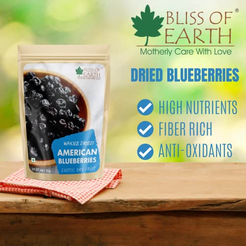 Bliss of Earth 200gm Whole Dried American Blueberries Exotic Dry Fruit King of Antioxidant