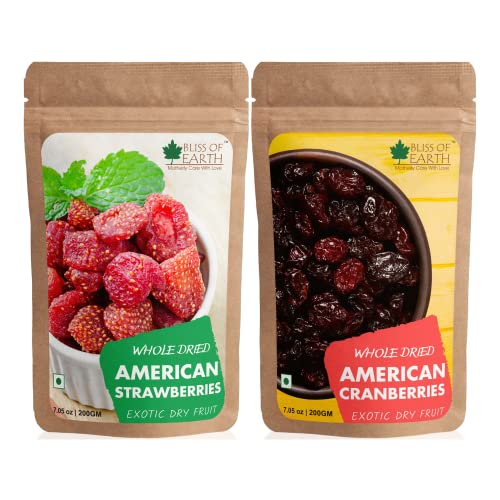 Bliss of Earth 200gm Whole Dried American Strawberries+200gm Whole Dried American Cranberries Exotic Dry Fruit Healthy and Tasty