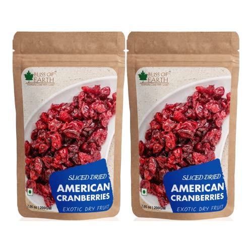 Bliss of Earth 2x200gm Sliced Dried American Cranberries Exotic Dry Fruit Vitamins E, K & C Rich (Pack of 2)