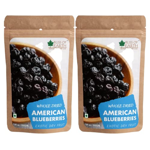 Bliss of Earth 2x200gm Whole Dried American Blueberries Exotic Dry Fruit King of Antioxidant (Pack of 2)