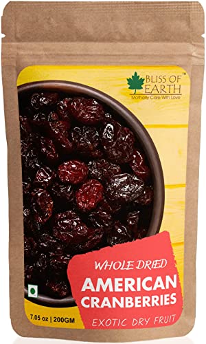Bliss of Earth Dried Whole Cranberries are handpicked from the United States of America. These berries are natural and delightful dried berries that an excellent source of antioxidants Also rich in vitamin K&c and fiebre cranberries offer a daily dose of nutrients. Unlike many other dry fruits these berries are extremely versatile in their use. Dried cranberries are a culinary ingredient that will help you produce a variety of great dishes.