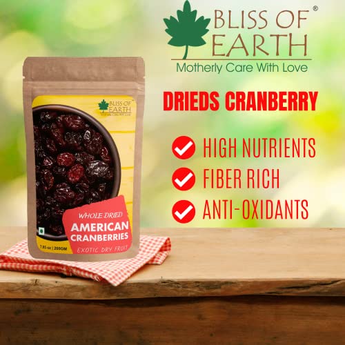Bliss of Earth Dried Whole Cranberries are handpicked from the United States of America. These berries are natural and delightful dried berries that an excellent source of antioxidants Also rich in vitamin K&c and fiebre cranberries offer a daily dose of nutrients. Unlike many other dry fruits these berries are extremely versatile in their use. Dried cranberries are a culinary ingredient that will help you produce a variety of great dishes.