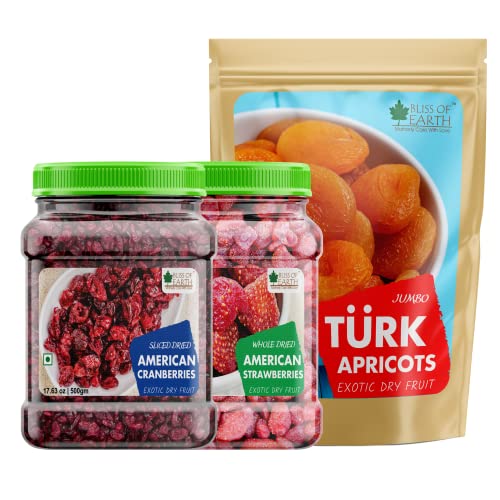 Bliss of Earth Dried Strawberries are handpicked from the United States of America. These berries are natural and delightful dried berries that are an excellent source of antioxidants. Also rich in vitamin A & C and fibre Strawberries offer anti-inflammatory properties helping in muscle recovery. Unlike many other dry fruits these berries are extremely versatile in their use. Dried strawberries are a culinary ingredient that will help you produce a variety of great dishes.Bliss of Earth Dried Sliced Cranberries are handpicked from the United States of America. These berries are natural and delightful dried berries that an excellent source of antioxidants Also rich in vitamin K&c and fiebre cranberries offer a daily dose of nutrients. Unlike many other dry fruits these berries are extremely versatile in their use. Dried cranberries are a culinary ingredient that will help you produce a variety of great dishes.