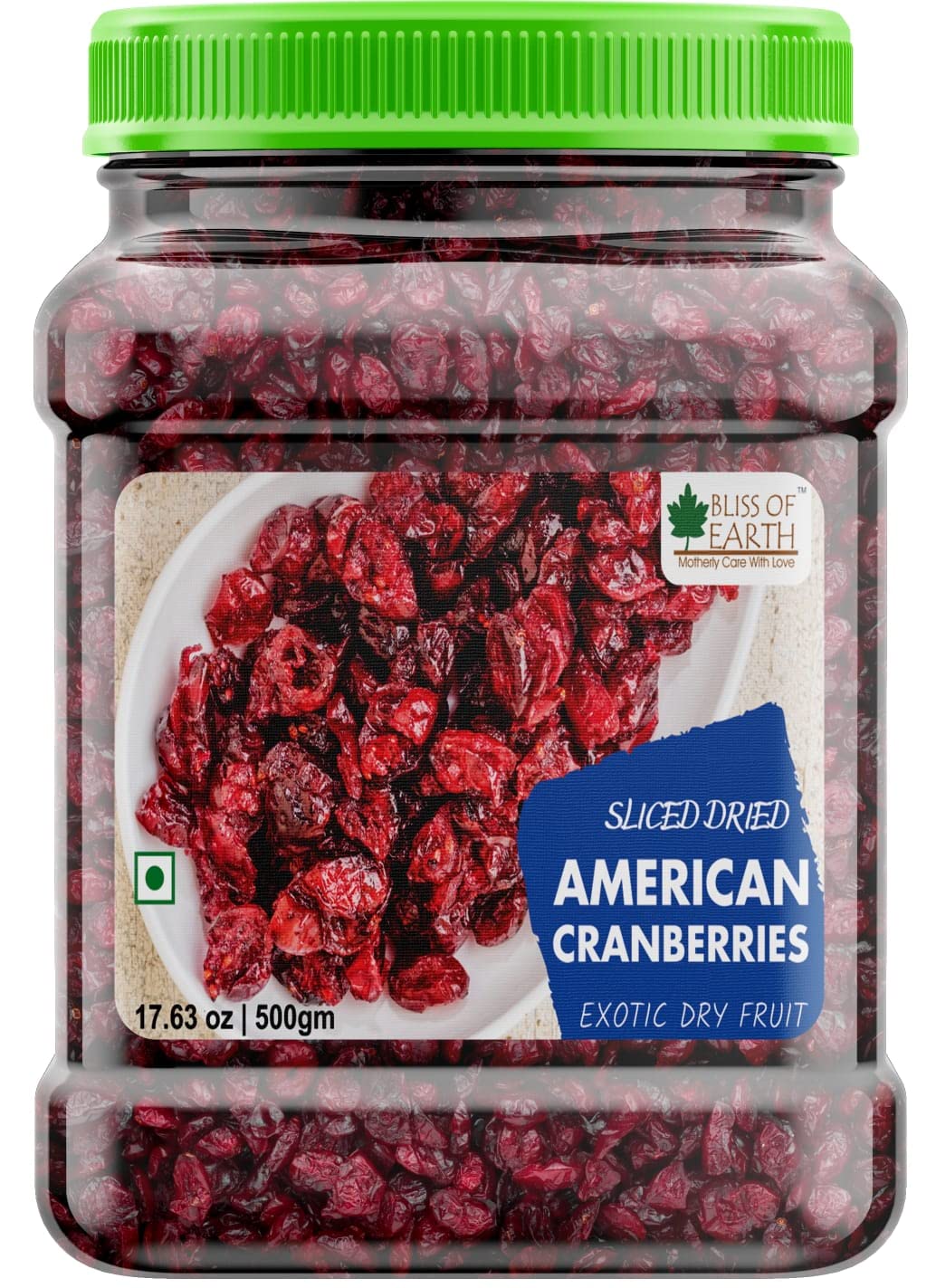 Bliss of Earth 500gm Sliced Dried American Cranberries Exotic Dry Fruit Vitamins E, K & C Rich