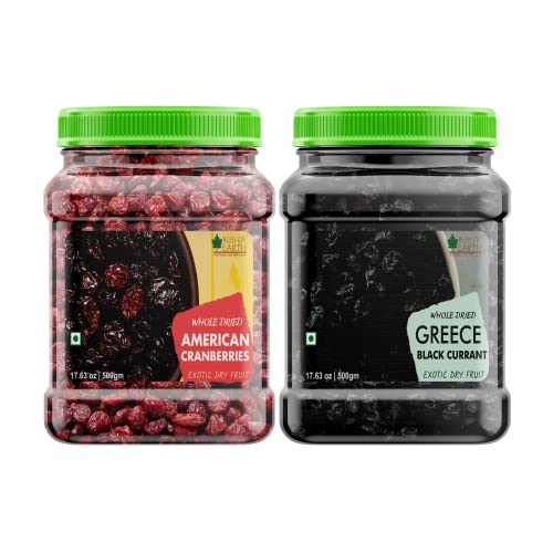 Bliss of Earth Dried Whole Cranberries are handpicked from the United States of America. These berries are natural and delightful dried berries that an excellent source of antioxidants Also rich in vitamin K&c and fiebre cranberries offer a daily dose of nutrients. Unlike many other dry fruits these berries are extremely versatile in their use. Dried cranberries are a culinary ingredient that will help you produce a variety of great dishes.Bliss of Earth Dried Black Currant are hand picked form the greek farms Apr are packed in a vacuum packaging for extra freshness. Dried black currant are a powerhouse of nutrition offering dietary fiber as well as vitamins and minerals such as copper & manganese. These berries are a potent antioxidant antispasmodic and anti-diabetic agent. these are rich in vitamin c organic acids and essential oils besides the other micro and macronutrients. Hence they taste acidic but sweet.