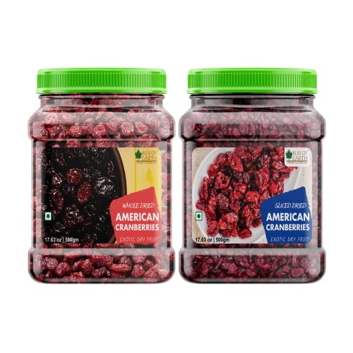 Bliss of Earth 500gm Whole Dried American Cranberries+500gm Sliced Dried American Cranberries Exotic Dry Fruit Vitamins E, K & C Rich