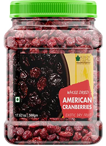 Bliss of Earth Dried Whole Cranberries are handpicked from the United States of America. These berries are natural and delightful dried berries that an excellent source of antioxidants Also rich in vitamin K&c and fiebre cranberries offer a daily dose of nutrients. Unlike many other dry fruits these berries are extremely versatile in their use. Dried cranberries are a culinary ingredient that will help you produce a variety of great dishes.