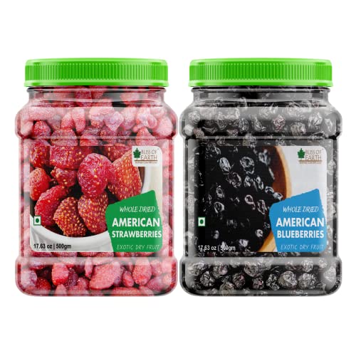 Bliss of Earth Dried Strawberries are handpicked from the United States of America. These berries are natural and delightful dried berries that are an excellent source of antioxidants. Also rich in vitamin A & C and fibre Strawberries offer anti-inflammatory properties helping in muscle recovery. Unlike many other dry fruits these berries are extremely versatile in their use. Dried strawberries are a culinary ingredient that will help you produce a variety of great dishes.Bliss of Earth Dried Whole Blueberries are handpicked form he United States of America.These berries are natural and delightful dried berries having a sweet flavour and they are succulent & nutritious Blueberries are rich in a flavonoid called "anthocyanin" which has many health benefits. Unlike many other dry fruits these berries are extremely versatile in their use. Dried Blueberries are culinary ingredient that will help you produce a variety of great dishes.