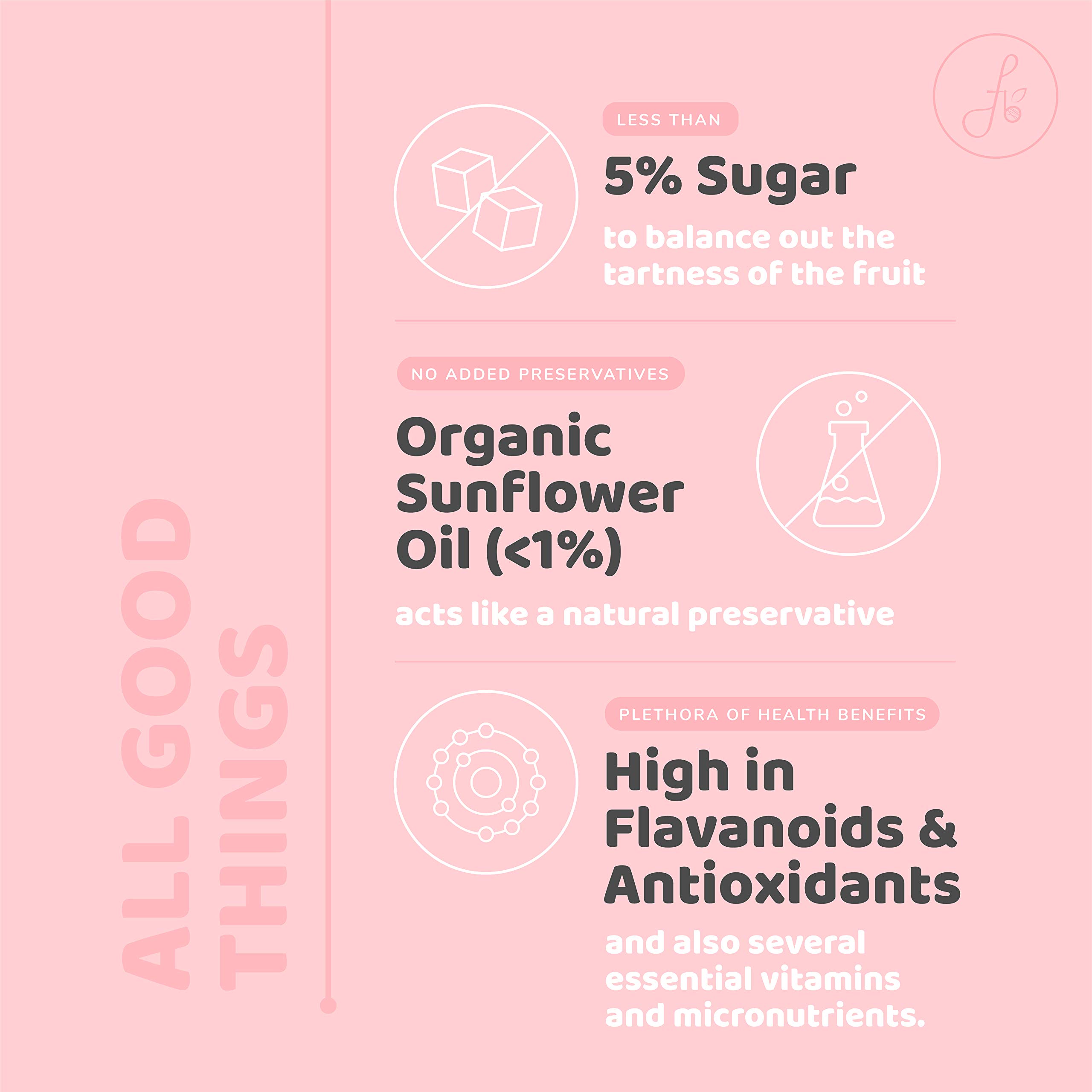 Flyberry's premium dried cranberries are the perfect balance between tart and sweet. With Organic Apple Juice Infused in it