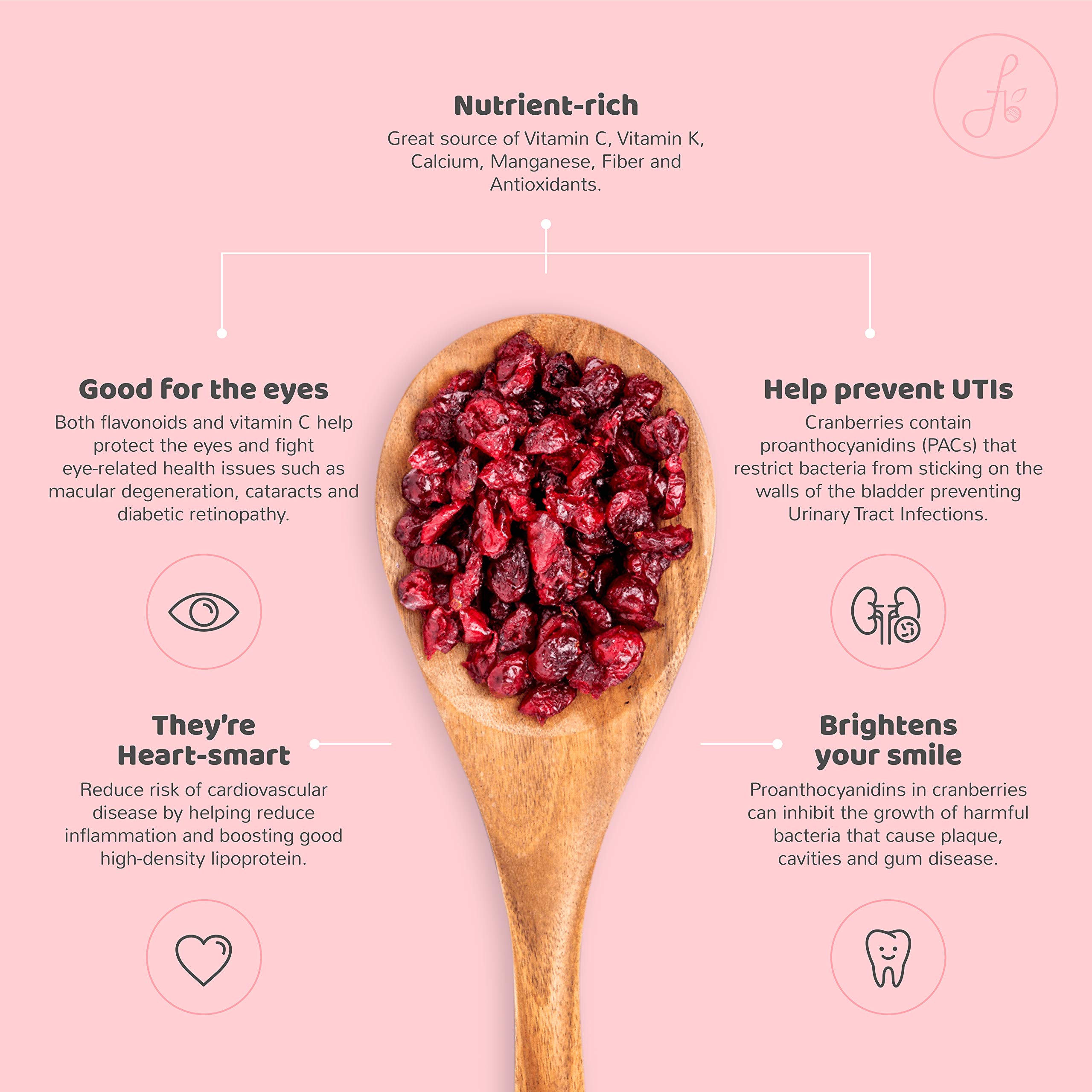 Cranberries contain high levels vitamins c and k calcium manganese fibre and antioxidants. Consuming cranberries on a regular basis can prove to be good for the eyes help prevent urinary tract infections brighten your smile. Packed in induction sealed air