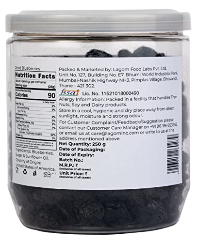 Lagom Gourmet Dried Blueberry 250g | Gluten Free | Vegan | Plant Based | Non GMO | Blueberry Dry Fruit