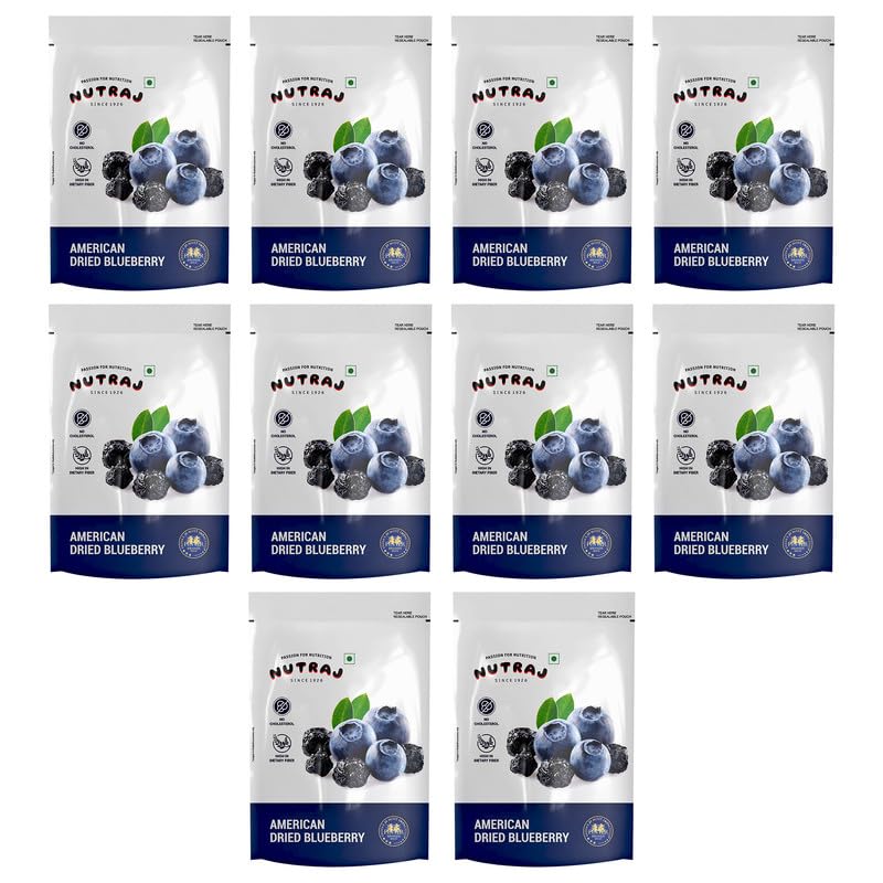 Nutraj American Blueberry Dried Whole 1.5kg (150g x 10 Pouch) | Berries | Dry Fruits | Grocery Item