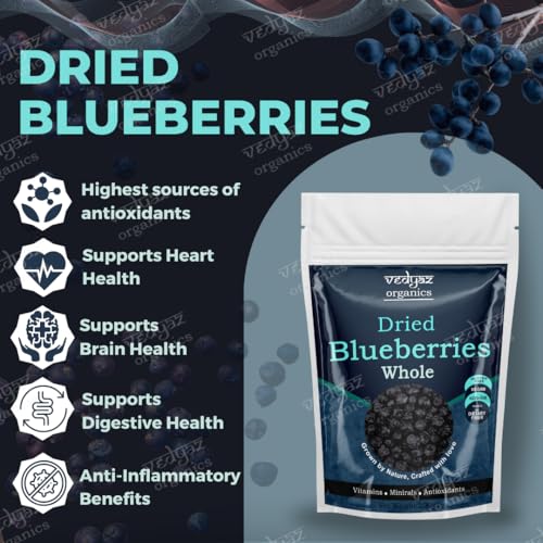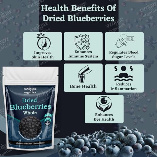 Vedyaz Organics Whole Dried Blueberries/Blueberry dry fruit - 400gm - 100% Natural and Gluten free snacks