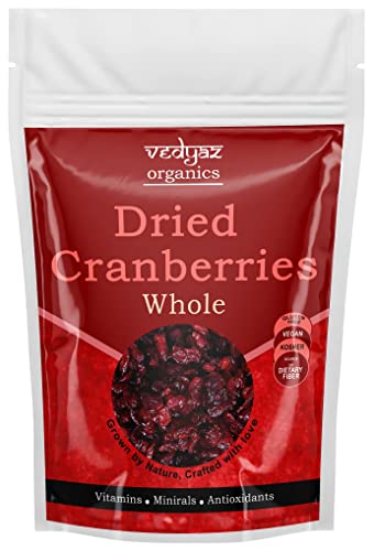 Vedyaz Organic Dried Whole Cranberries are naturally dried super healthy with no addition of chemical preservatives flavors or colors.