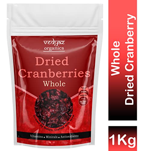 Vedyaz Organics Whole Dried Cranberries/Cranberry Dry fruit (BOLD) - 1Kg - Gluten free snacks