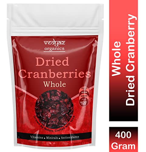 Vedyaz Organics Whole Dried Cranberries/Cranberry Dry fruit (BOLD) - 400gm - 100% Natural and - Gluten free snacks