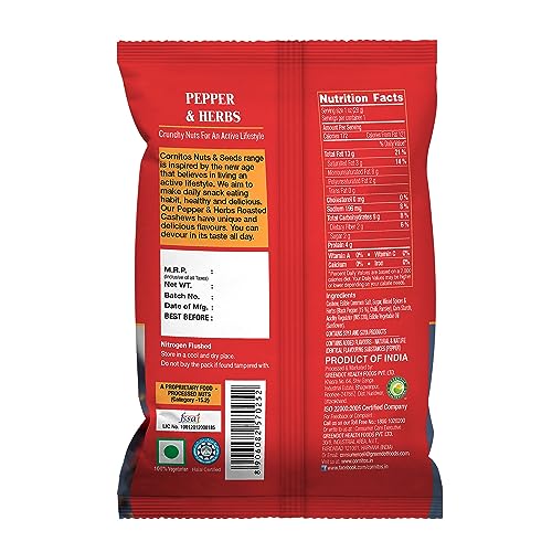 CORNITOS Roasted Cashews Pepper & Herbs | Pack of 10 (25g Each)
