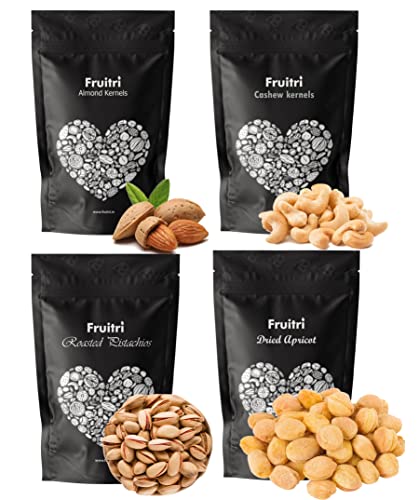 Fruitri Fresh and Premium Nuts Dry Fruits Combo Pack Almond Cashew Apricot Pistachios (Combo4 100g x 4)