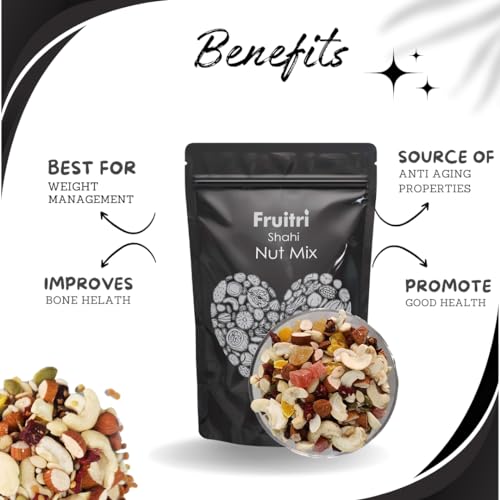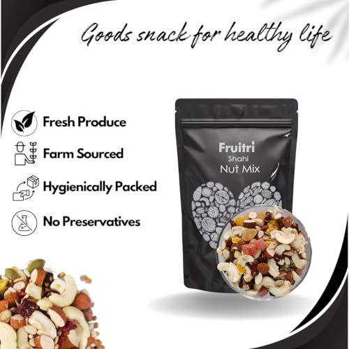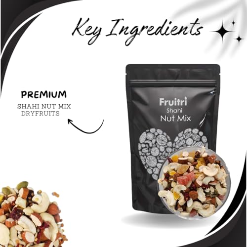 Fruitri Premium Shahi Nut Mix 400 grams Trial Mix Dry fruits Nuts and seeds Super Mix (Almonds Cashew White saunf Dhaniya Dal Watermelon seeds Pumpkin Seeds Mix Fruits Khajoor Supari