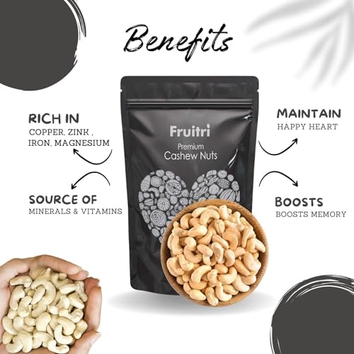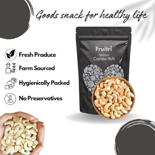 Fruitri Premium Whole Cashews 500g | Natural Whole Crunchy Cashew nuts | Premium Kaju nuts Dry Fruit | Nutritious & Delicious | Gluten Free & Plant based Protein | W320
