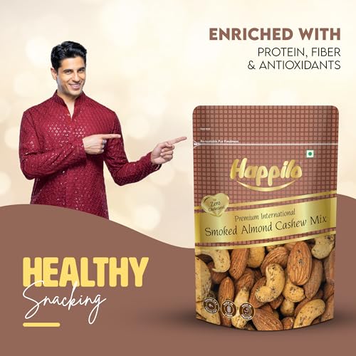 Indulge in the irresistible flavors of Happilo's Premium International Smoked Almond Cashew Mix. This exquisite blend features roasted California almonds and cashews that have been expertly smoked to perfection infusing them with a rich smoky aroma and flavor. Seasoned with Himalayan pink salt these nuts offer a delightful balance of savory and salty notes that tantalize the taste buds with every bite. Packed with protein fiber and essential nutrients this smoked almond cashew mix is not only delicious but also nutritious making it the perfect snack choice for those looking to satisfy their cravings while fueling their body with goodness. Whether enjoyed on its own or as a topping for salads yogurt or oatmeal Happilo's Premium International Smoked Almond Cashew Mix is sure to elevate your snacking experience.