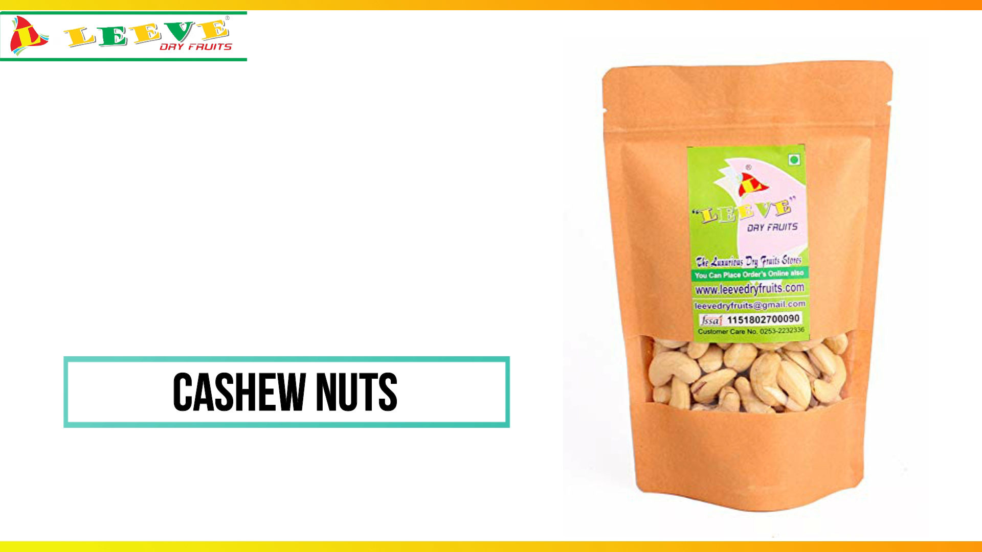 Cashews are from goa Its delightful sweetest and delicious taste crispy and crunchy. We packed properly in air bubble wrap packing. Cashew is packed with energy antioxidant minerals and vitamins. Cashews are high in calories where 100 gms of nuts provides 553 calories. Cashews have crunchy buttery texture with a pleasant sweet fruity aroma. Leeve Dry Fruits have number of varieties in cashew and flavoured cashew like red chilly cashew green chilly cashews and black pepper cashews.