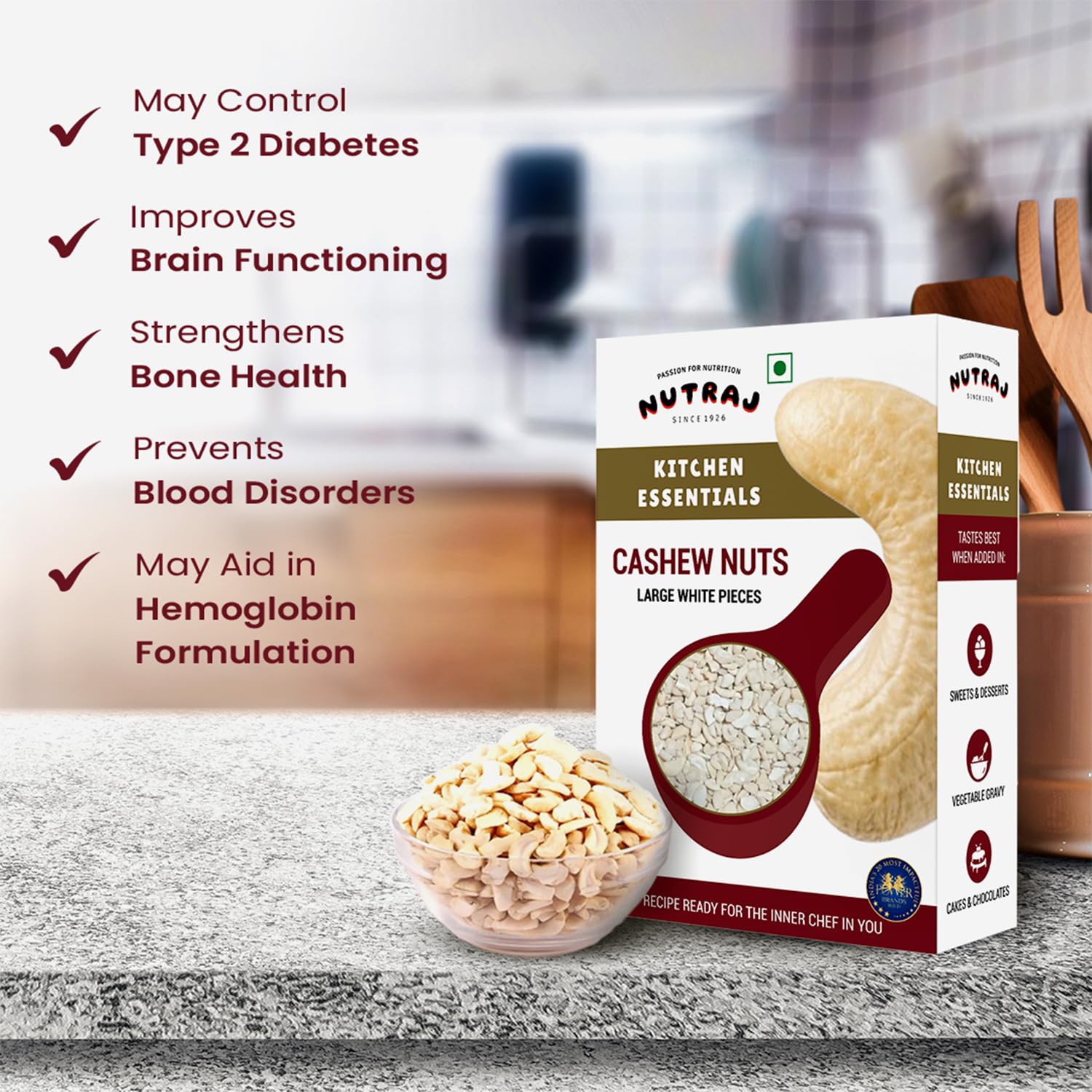 • Uses: Nutraj Kitchen Essentials Cashews are a perfect addition in shakes smoothies cakes muffins and other baked goods.