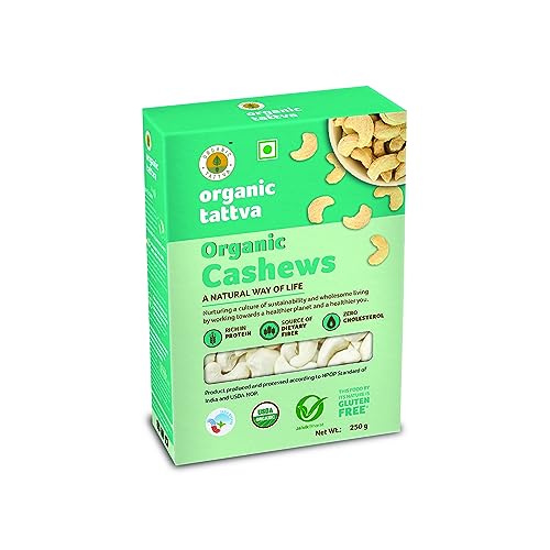 HomeGroceryNutsCashewsOrganic Tattva, Organic Cashews(Kaju) 100g | Rich in Dietary Fiber and Protein | Source of Iron and Calcium | Full of Natural Oils | NO Cholesterol and NO Trans-Fat | Naturally Gluten Free