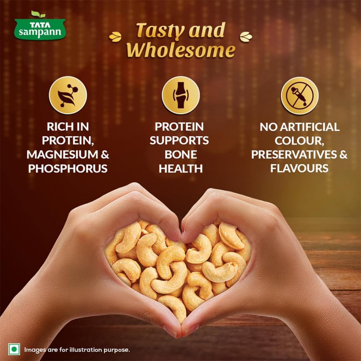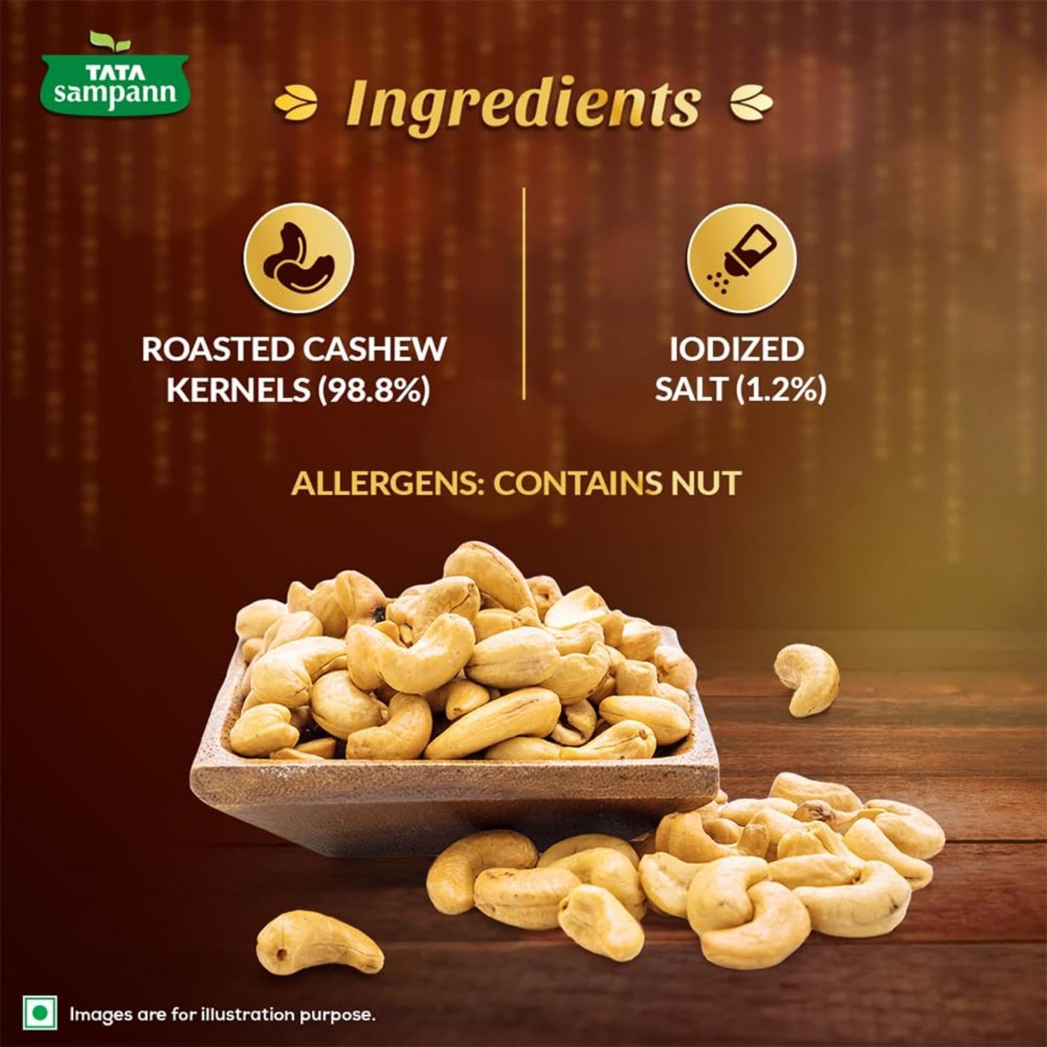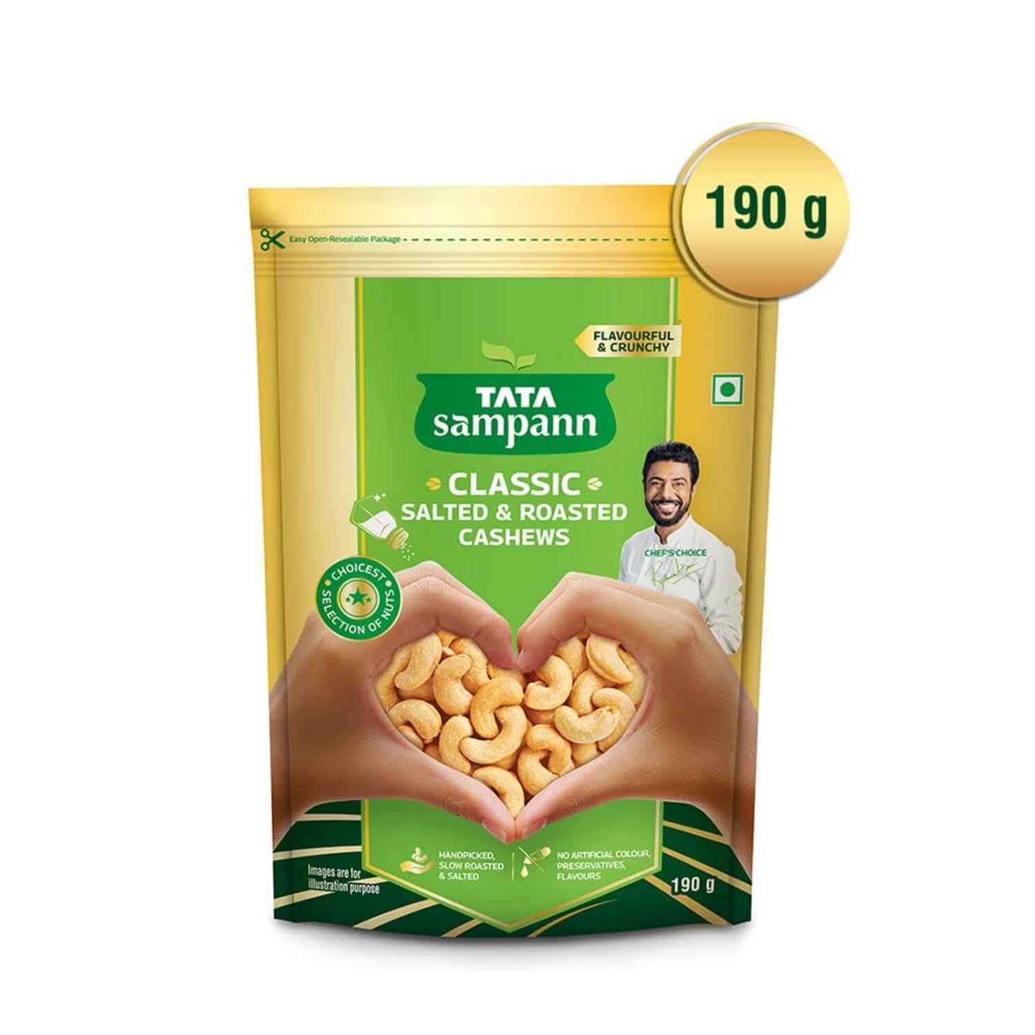 Snack On Crunchy & Flavourful Roasted and Salted Cashews! Indulge in the irresistible delight of Tata Sampann Classic Salted & Roasted Cashews. Enjoy the delicious flavourful and crunchy snacking options for you. These slow-roasted and salted cashew nuts are handpicked for you to ensure premium quality and undergo 20+ quality parameter checks to provide you with the choicest selection of cashews. These roasted and salted kaju are rich in Protein Magnesium and Phosphorus. They contain no artificial colours preservatives and flavours and are a flavourful snacking partner. Enjoy these classic roasted and salted cashews for breakfast mid-day snacking or on-the-go snacking. Elevate your snacking game with Tata Sampann Classic Salted & Roasted Cashews today! Storage Instructions: Store in a cool and dry place. Store away from direct heat or sunlight.