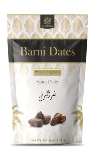 AL MASNOON Barni Dates are a delicious and nutritious treat sourced directly from Saudi Arabia presented in a convenient 500g pack. Known for their rich flavor and natural sweetness Barni dates are a popular choice for snacking and culinary uses. These dates are soft and succulent offering a delightful chewy texture that makes them perfect for enjoying on their own or incorporating into various dishes. Packed with essential nutrients including fiber vitamins and minerals Barni dates are an excellent energy booster and a healthy addition to your diet. Ideal for adding to smoothies salads or baked goods they can also be used in savory dishes or enjoyed as a natural sweetener in desserts. With their rich cultural heritage and numerous health benefits AL MASNOON Barni Dates are not only a tasty indulgence but also a wholesome choice for any occasion. Enjoy the authentic taste of Saudi Arabia with every bite!