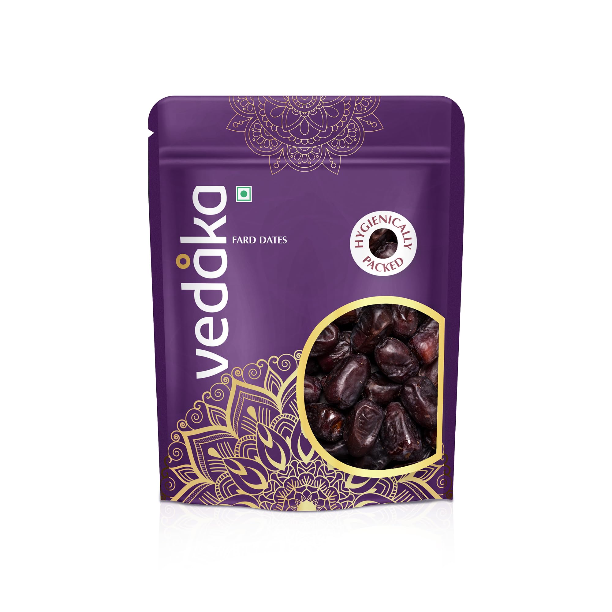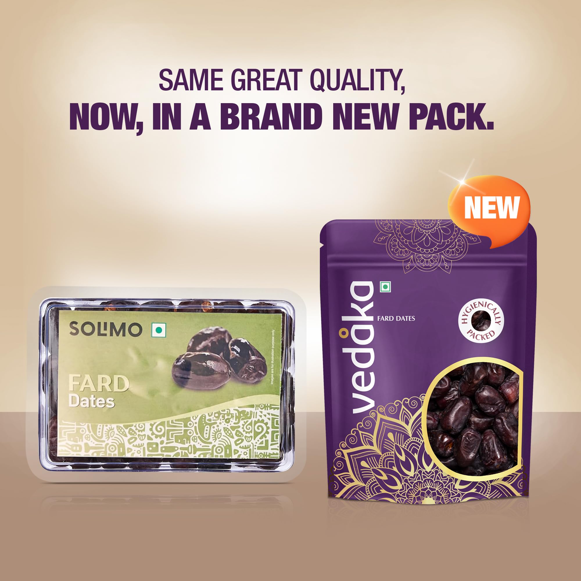 Introducing Solimo Fard Dates 500g. Made from preservative-free Fard dates with no artificial flavors they're perfect for snacking desserts and smoothies. Hygienically packed and tested against rigorous standards these dates ensure freshness and quality. Enjoy anytime healthy snacking for both adults and kids. Store in a cool dry place away from direct sunlight and refrigerate once opened for optimal freshness.