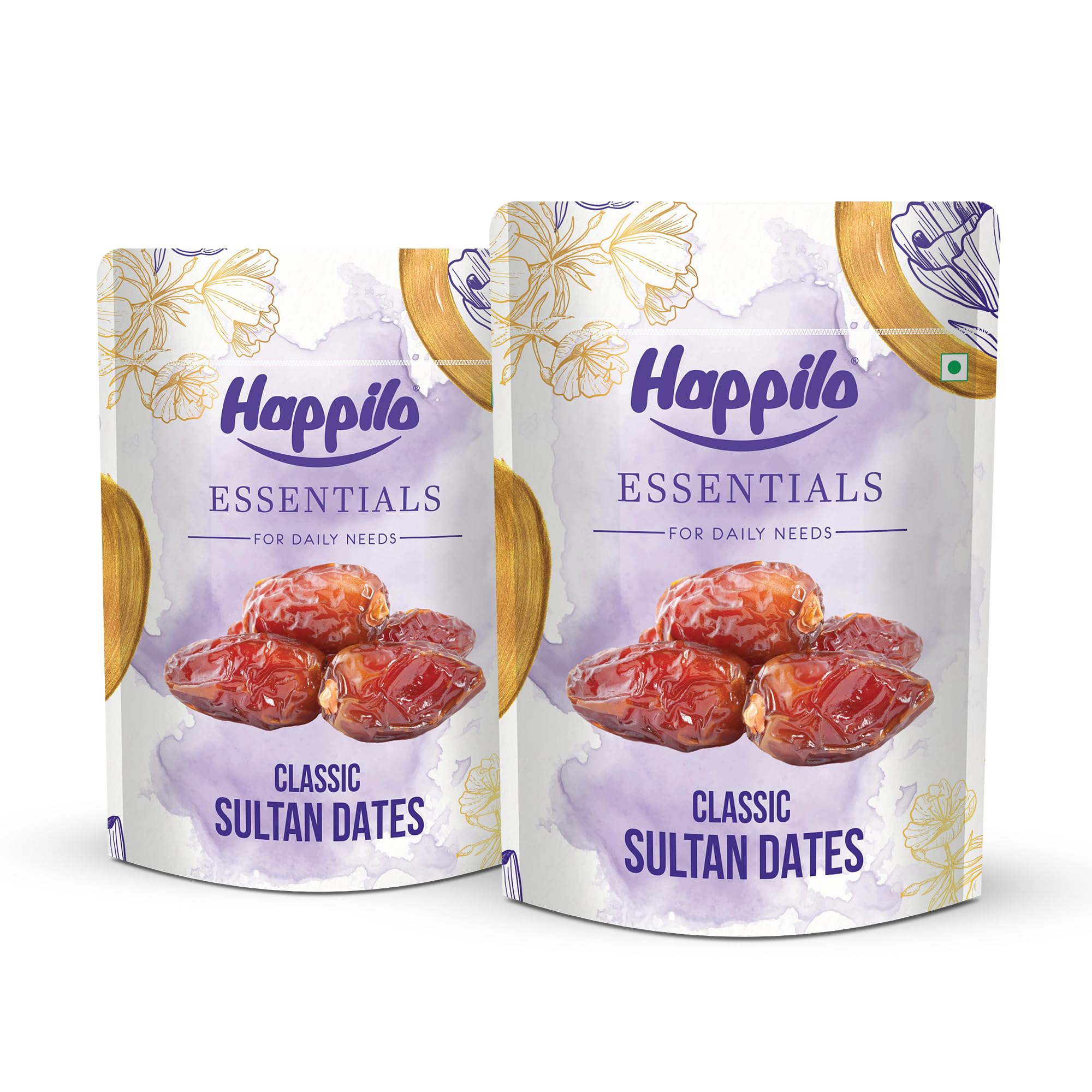 Happilo Essentials Classic Sultan Dates 500g (Pack of 2) Exquisite Taste and Texture Rich in Nutrient Vitamins Minerals and Fiber