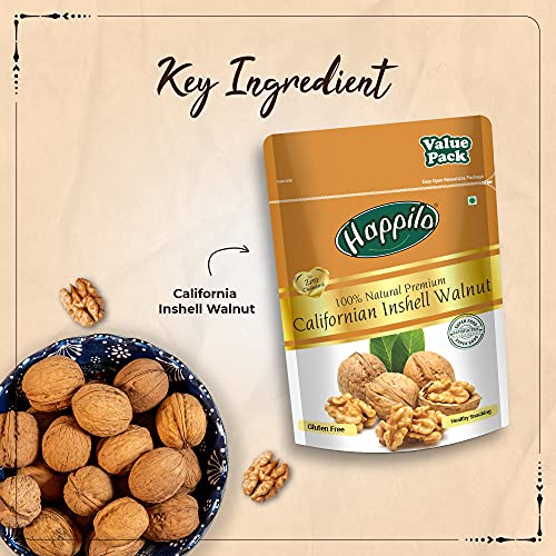 Happilo Premium 100% Natural Californian Inshell Walnut Kernels Value Pack PouchRaw 500gWalnuts are deliciously healthy and great for snacking baking or cooking. These in shell raw walnut halves are mainly grown in California and northern India. Eating raw walnuts is one of the easiest things to do to improve your health.Happily has travelled the world to get the finest gourmet dry fruits dried fruits nuts berries and dates. Indulge into the gourmet and grocery world of Happily with awesome nuts and dry fruits along with the unique dry fruit mixes fusions and flavoured dry fruits healthy seeds and dried berries specially crafted for your taste and health. Happilo dry fruit gift boxes and festive dry fruits and nuts gift pack brings health happiness and love to gift to your colleagues friends and family. We bring you the taste and health together in single pack in the finest of packing packed in an art of the state facility certified by all majors like fssai iso. Every Happily pack is a perfect dry fruits gift for every festive occasion.Happilo Premium International Queen Kalmi Dates 200g (Pack of 2)Happilo has travelled the world to get the finest gourmet dry fruits. They are one of the most nutritious dried fruits in the world they're a yummy healthy snack. Great for Snacking adding to Cereal Cooking and Baking. High Antioxidants Dietary Fiber No Gluten Non GMO Zero Trans Fat & Zero Cholesterol. Daily need products for a healthy and energetic life. Happilo Zip Lock Pouch with airtight seal to ensure the product is protected and fresh. Quality assured - Happilo products are rigorously tested against the industry's best quality standards.