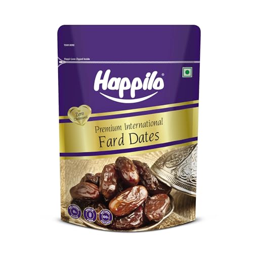 Indulge in the world of luxury dates with Happilo Premium Fard Dates available in this convenient 500g pack. These dates are a true representation of quality and excellence carefully selected to provide you with the finest Fard dates available. Beyond their exceptional taste and melt-in-your-mouth texture they are a powerhouse of essential nutrients including vitamins minerals and dietary fiber. Enjoy them as a wholesome snack or get creative in the kitchen by incorporating them into your favorite recipes. With their unique flavor and versatility these premium dates are a culinary delight. Plus the resealable packaging ensures their freshness making them a perfect addition to your pantry. Elevate your snacking and culinary experience with Happilo Premium Fard Dates.