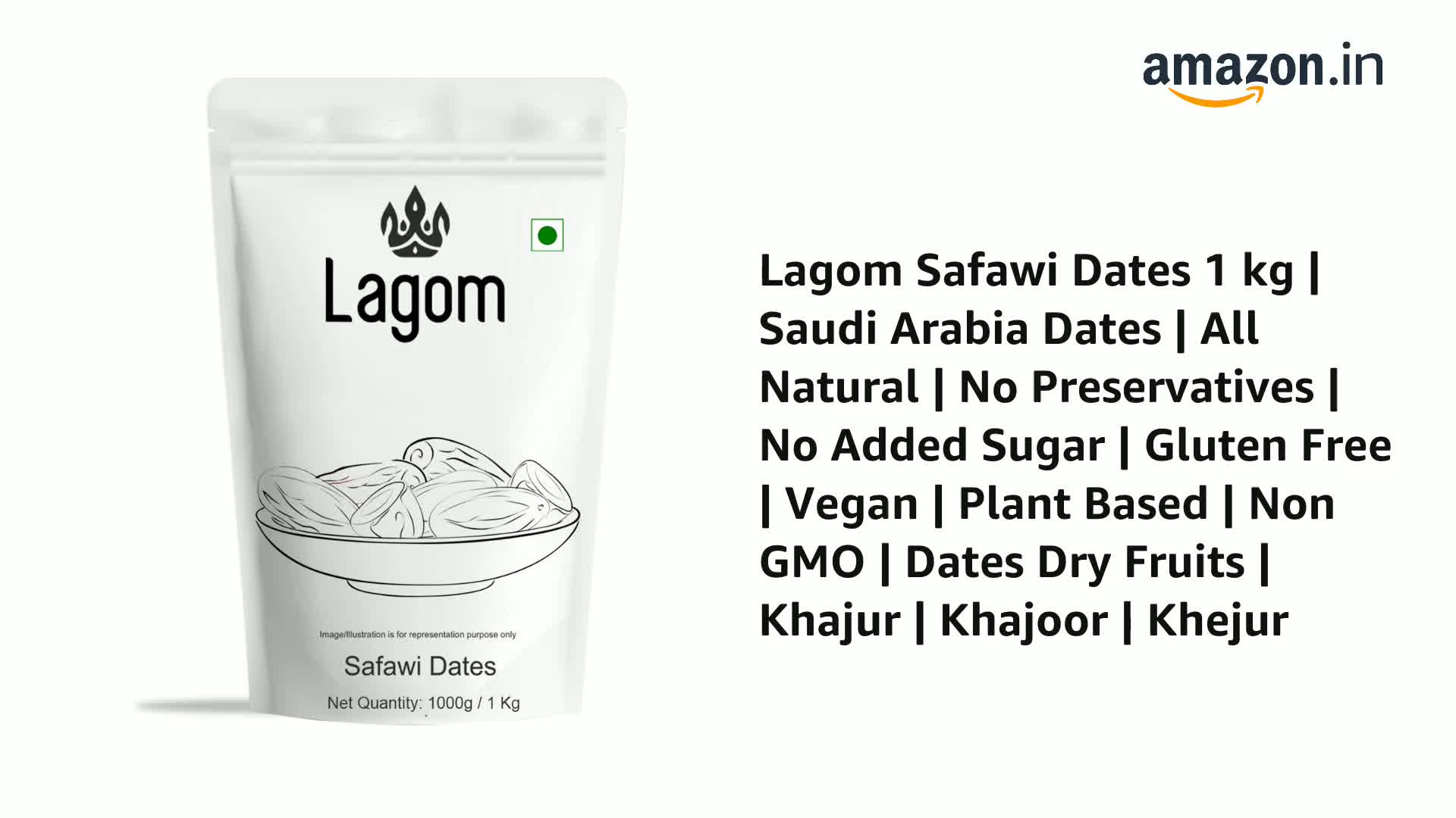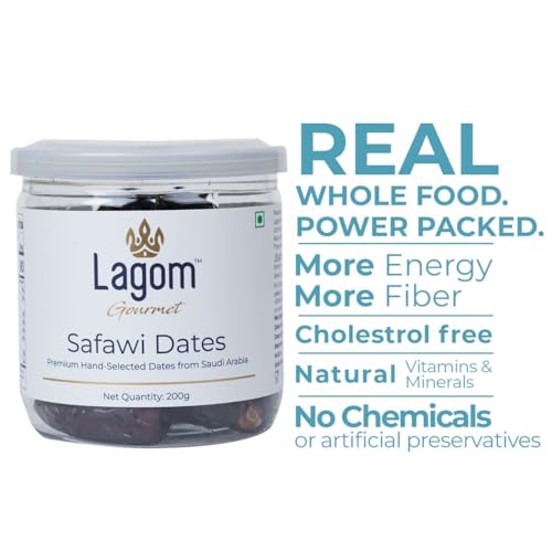 Lagom Gourmet Safawi Dates 1 kg | Saudi Arabia Dates | All Natural | No Preservatives | No Added Sugar | Gluten Free | Vegan | Plant Based | Non GMO | Dates Dry Fruits | Khajur | Khajoor | Khejur