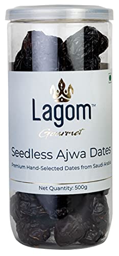 Lagom Gourmet Seedless Ajwa Dates 500G Saudi Arabia Dates All Natural No Preservatives No Added Sugar Gluten Free Vegan Plant Based Non Gmo Dates Dry Fruits Khajur Khajoor Khejur