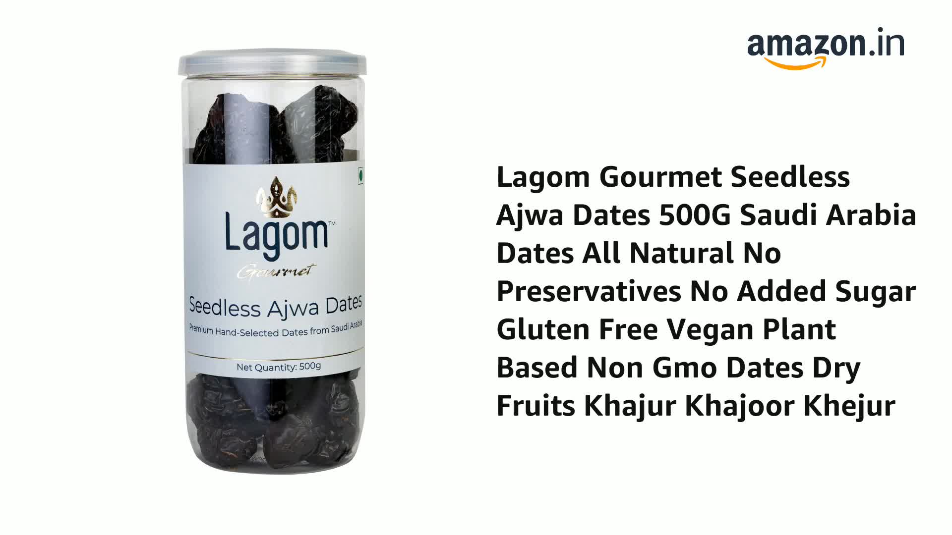 HomeGroceryNutsDatesLagom Gourmet Seedless Ajwa Dates 500G Saudi Arabia Dates All Natural No Preservatives No Added Sugar Gluten Free Vegan Plant Based Non Gmo Dates Dry Fruits Khajur Khajoor Khejur