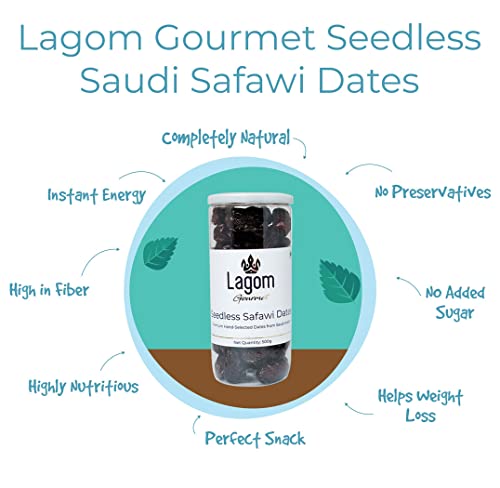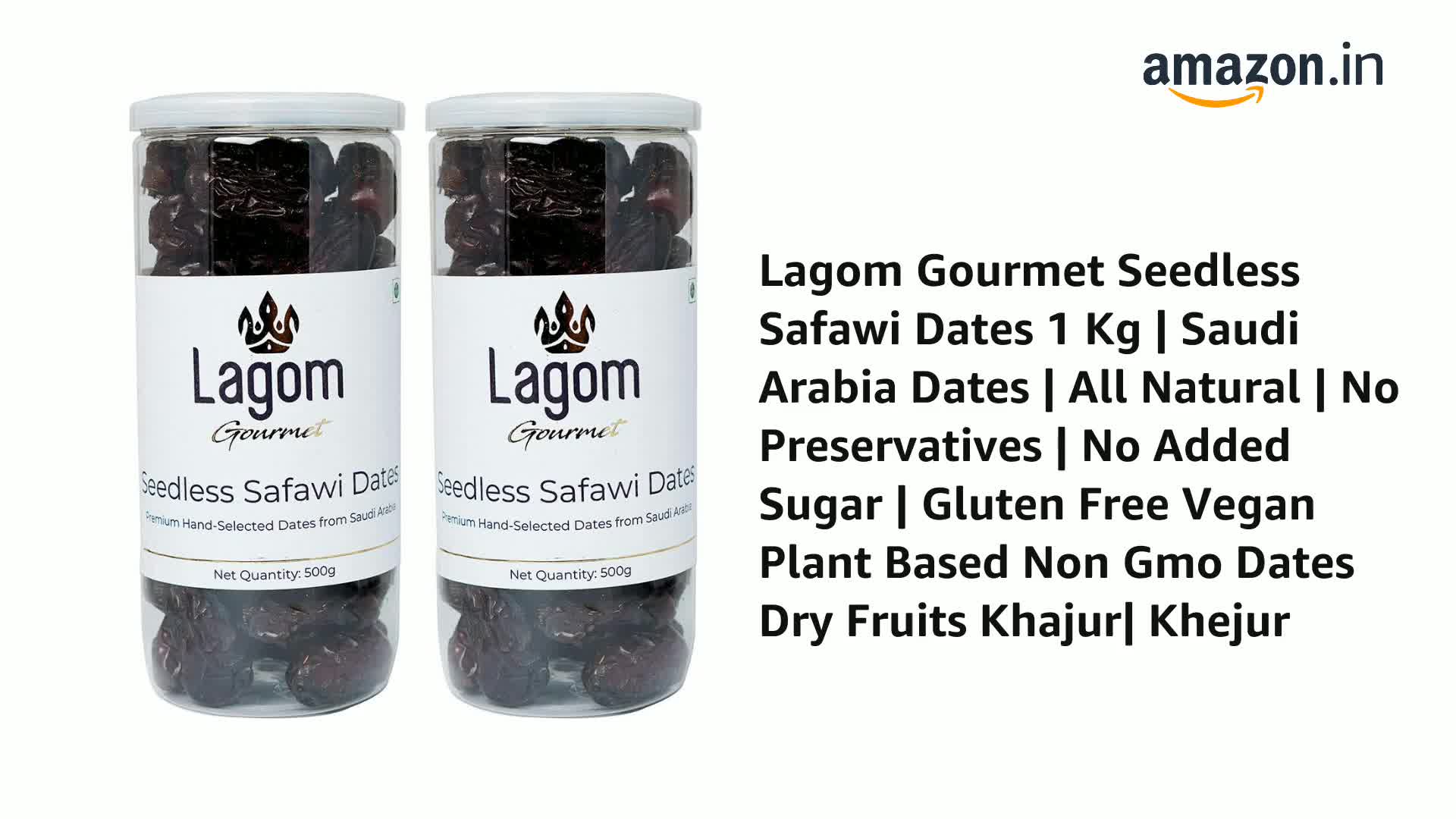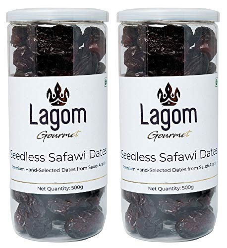 HomeGroceryNutsDatesLagom Gourmet Seedless Safawi Dates 1 Kg | Saudi Arabia Dates | All Natural | No Preservatives | No Added Sugar | Gluten Free Vegan Plant Based Non Gmo Dates Dry Fruits Khajur| Khejur