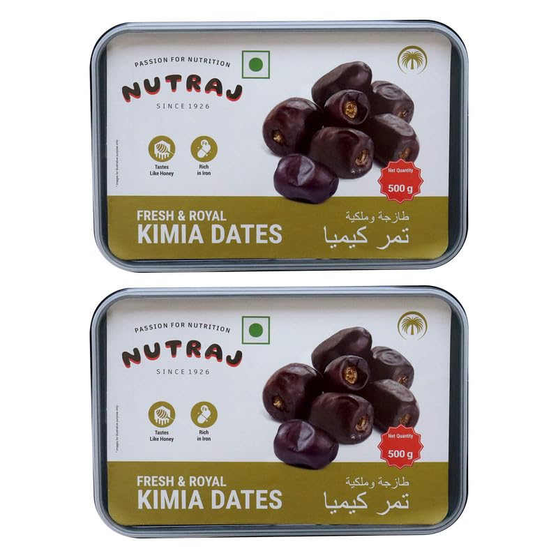 Nutraj Kimia Dates 1kg (500g X 2) | Mazafati Dates | Khajoor | Dry fruits | Nuts | Grocery Items