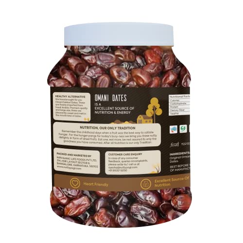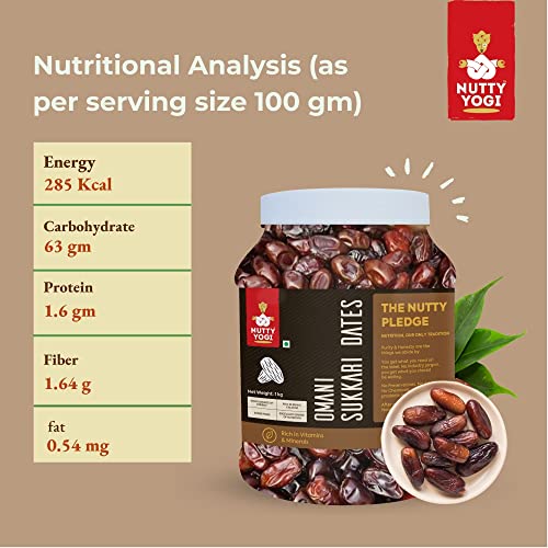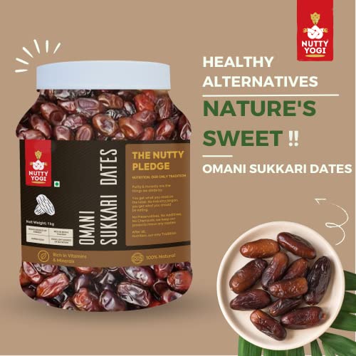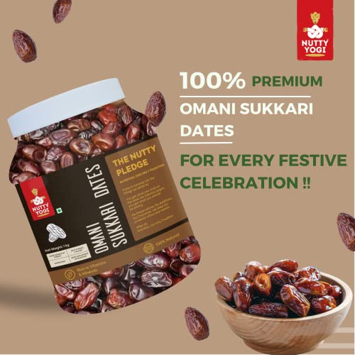 Nutty Yogi Omani Dates 1kg Jar | Healthy & Nutritious Snack | Rich in Protein & Vitamins | Natural Sweetener