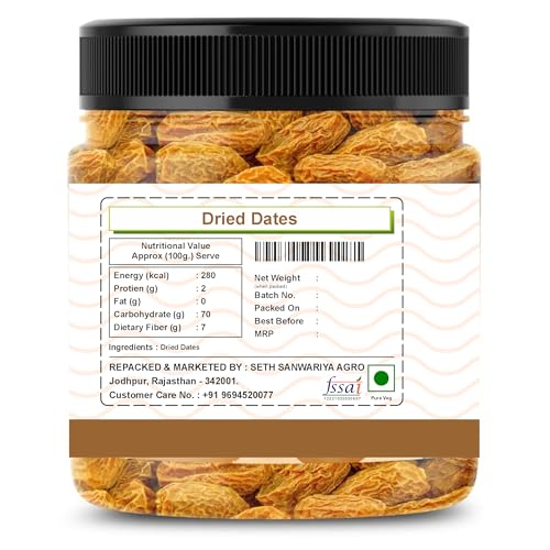 • PURE INGREDIENTS: Contains 100% dried dates (Sukha Khajoor) with no added preservatives or artificial ingredients