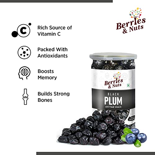 Berries And Nuts Dried Black Plum | Dehydrated Plum, Prunes, Dried Fruit Plums | 250 Grams | 1 Bottle of 250 Grams