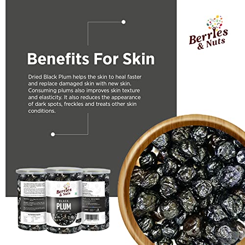 Berries And Nuts Dried Black Plum | Dehydrated Plum, Prunes, Dried Fruit Plums | 500 Grams | 2 Bottle of 250 Grams