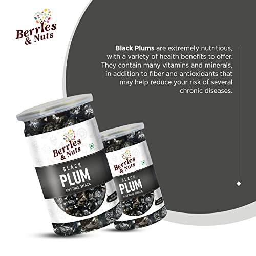 Berries And Nuts Dried Black Plum | Dehydrated Plum, Prunes, Dried Fruit Plums | 750 Grams | 3 Bottle of 250 Grams