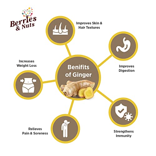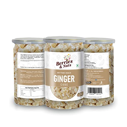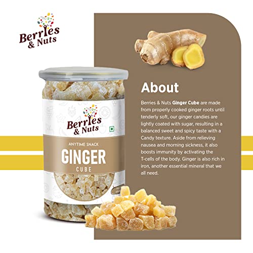 Berries And Nuts Dried Ginger Cube Cut | Dried Ginger Cubes, Dehydrated Fruits, Adrak, Ginger Dice | 200 Grams | 1 Bottle of 200 Grams