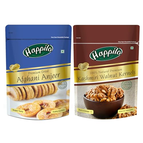 Happilo Premium Afghani AnjeerDried200gAfghani anjeer known for their creamy sweet and indulgent taste- They are also packed with nutritional goodness making them one of the healthiest dried fruit. Eating these amazing snack can keep the hunger pangs at bay.Happilo Premium 100% Natural Kashmiri Walnuts Kernels 200g Dry FruitsHappilo has travelled the world to get the finest gourmet dry fruits dried fruits nuts berries and dates. Indulge into the gourmet and grocery world of Happily with awesome natural nuts and dry fruits along with the unique dry fruit mixes fusions and flavoured dry fruits healthy seeds and dried berries specially crafted for your taste and health.