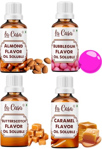 La Casa Flavor Oil Soluble (OS) Essence - Combo of 4 - Almond+Bubblegum+Butterscotch+Caramel | 40mlx4 |